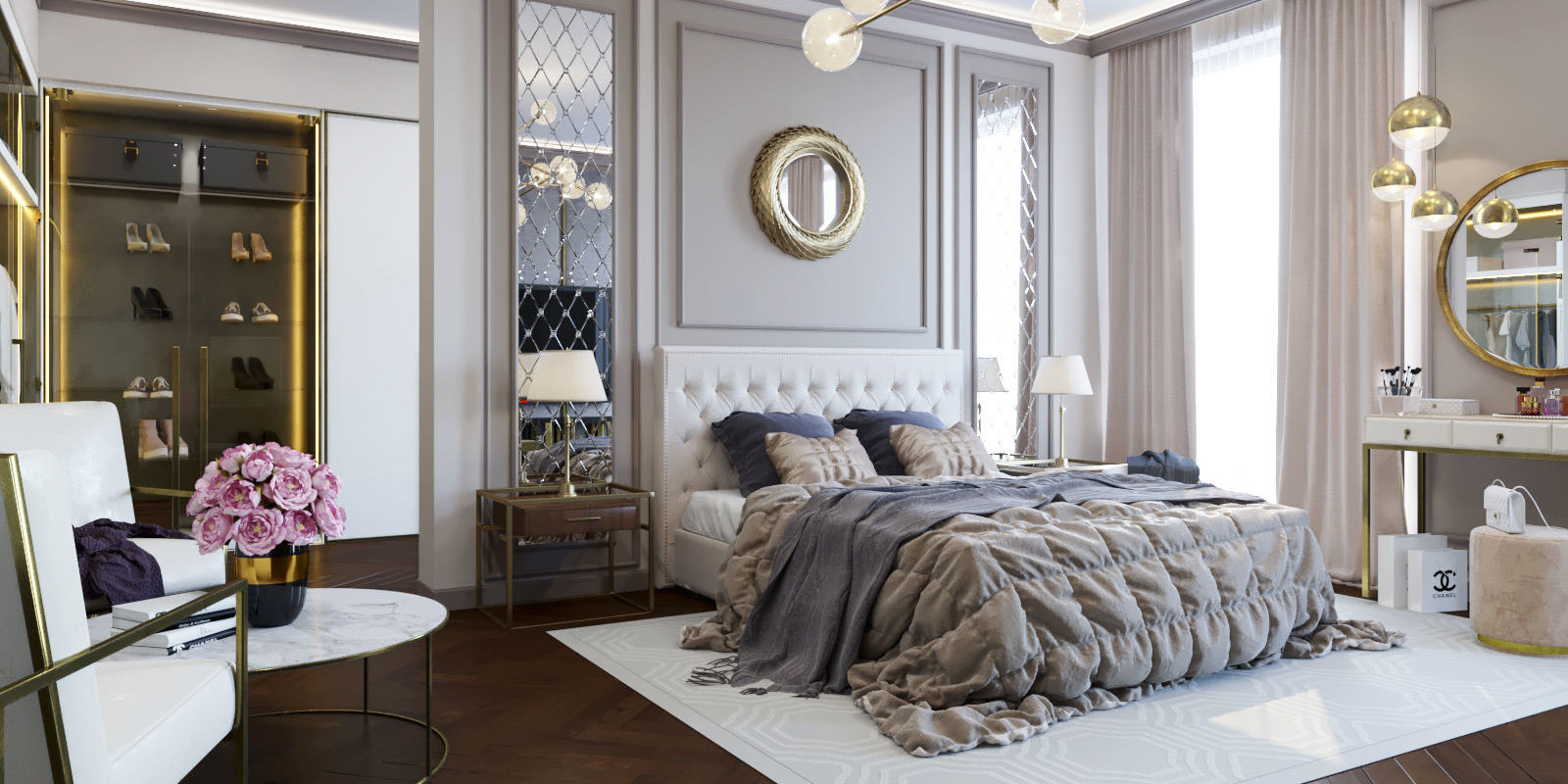 Đặc trưng của combo nội thất phòng ngủ cổ điển là yếu tố đối xứng và họa tiết hoa văn được chạm khắc tinh xảo, cầu kỳ. Cùng những gam màu đậm chất quý tộc, hoàng gia như trắng, be, dát vàng…Được phối hợp hài hòa mang đến không gian phòng ngủ tiện nghi, sang trọng thể hiện gu thẩm mỹ đẳng cấp của gia chủ.