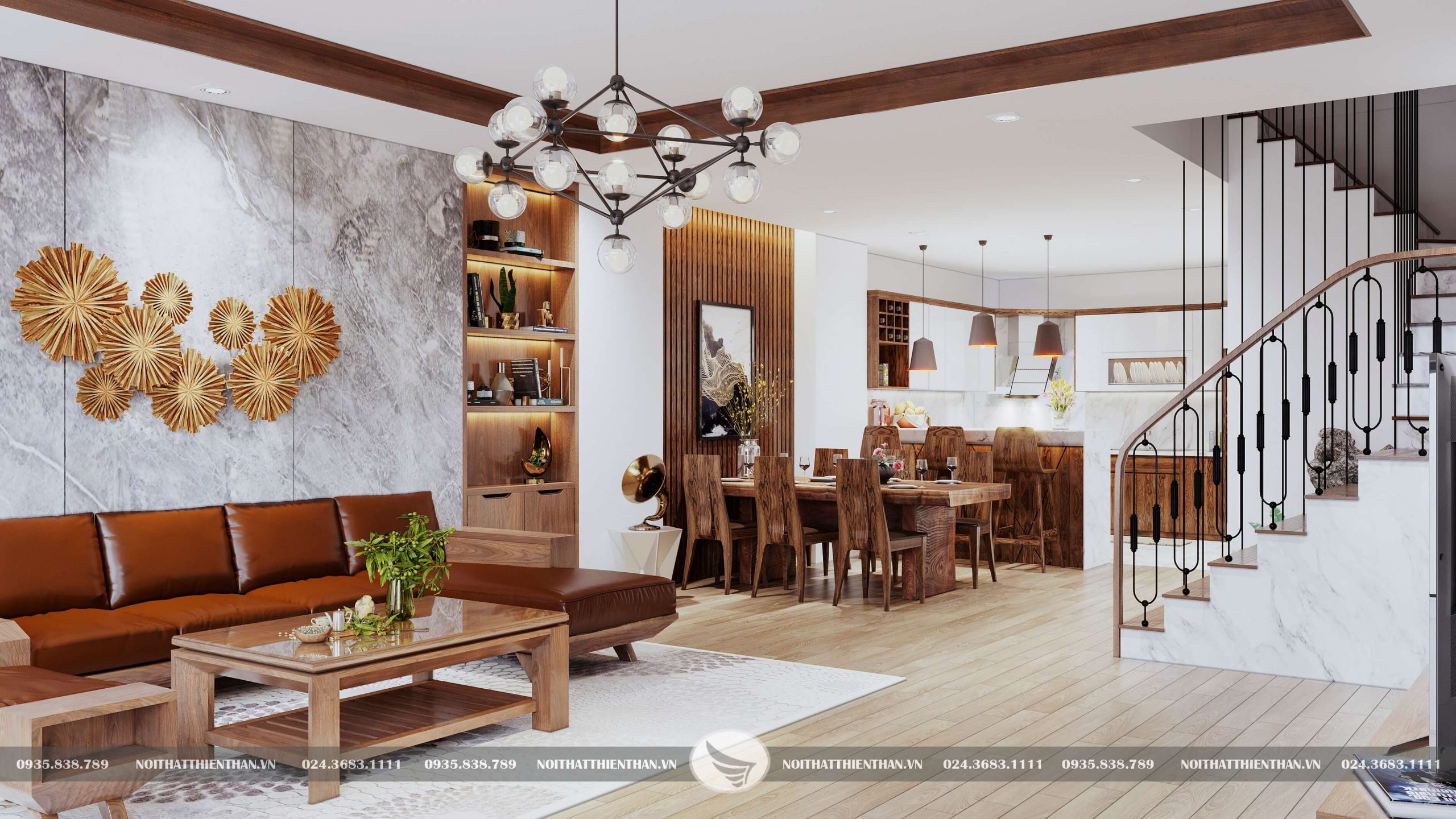 Diện tích 80m2 với sự bố trí khoa học và sáng tạo của KTS NTTT, gia chủ đã sở hữu được một không gian vô cùng đẳng cấp. Vẻ đẹp được toát lên từ chất liệu gỗ óc chó kết hợp sơn inchem, cùng với những kiểu dáng nội thất, phụ kiện trang trí độc đáo, lạ mắt, tinh tế.