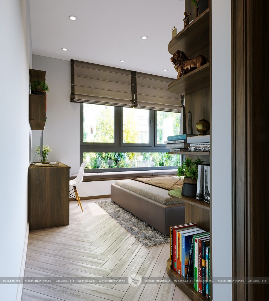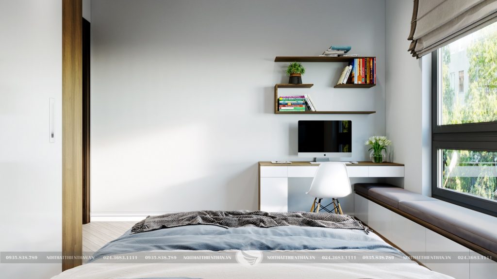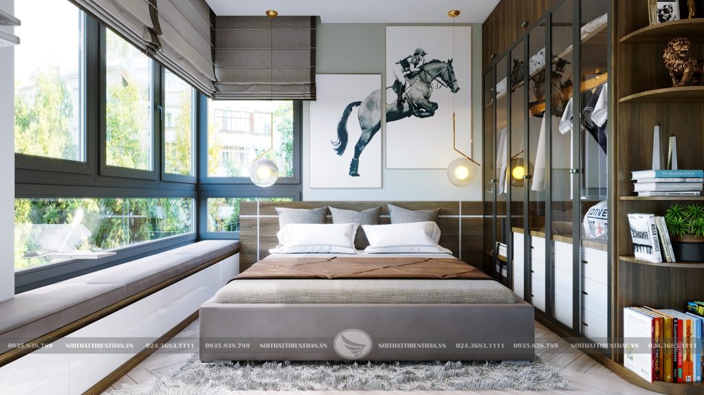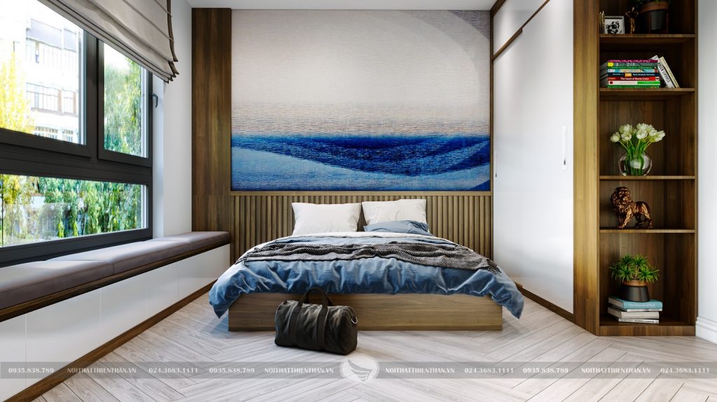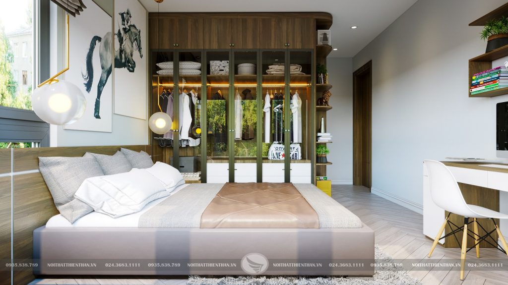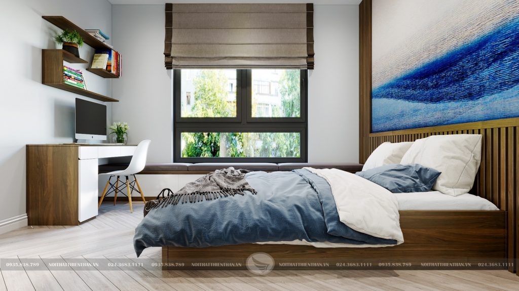 Không gian phòng ngủ được thiết kế dựa trên ý tưởng đơn giản nhưng tích hợp đầy đủ công năng. Nơi nghỉ ngơi cần được lưu ý về “khoảng thở” tức có nhiều sự thoáng rộng cho việc thư giãn và góp phần mang lạ giấc ngủ ngon.