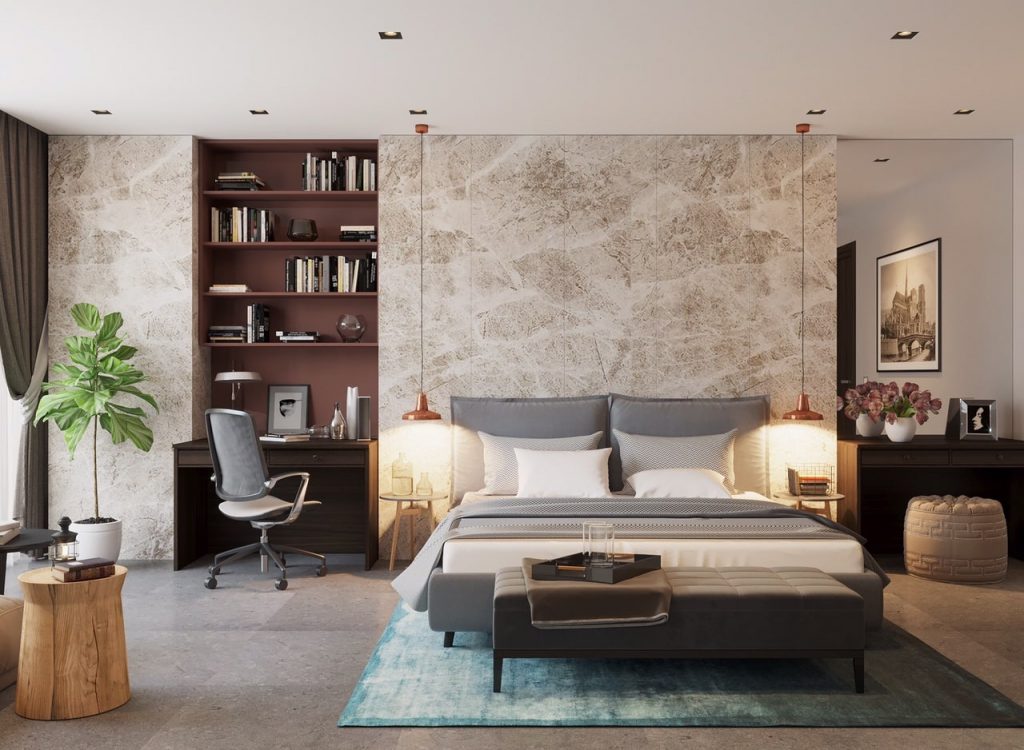Bài trí nội thất trong thiết kế nội thất phòng ngủ 25m2