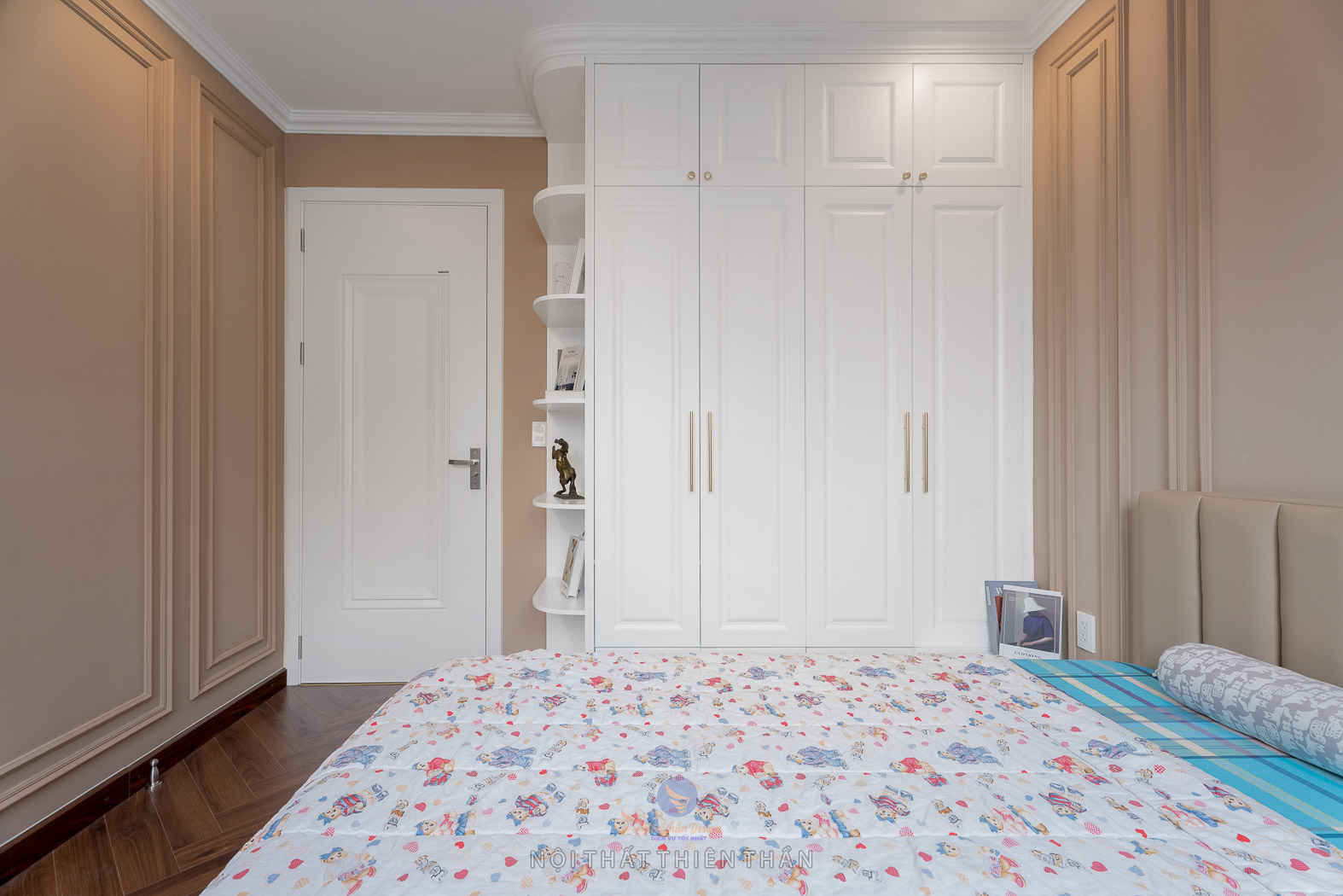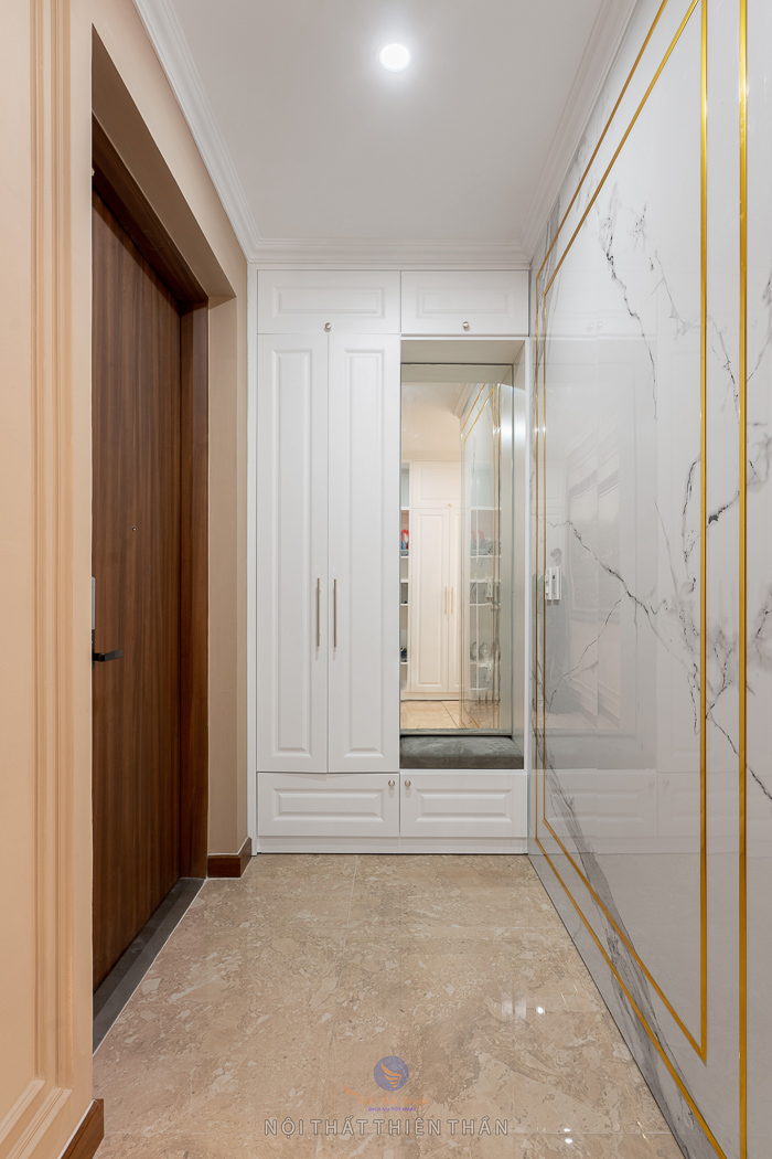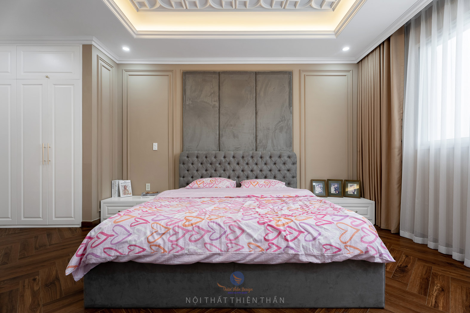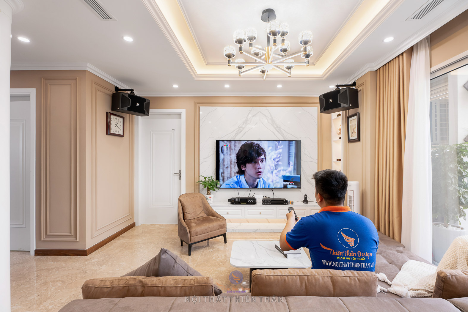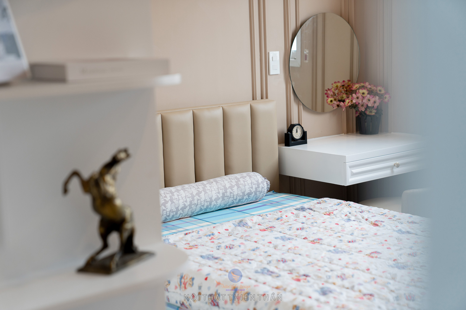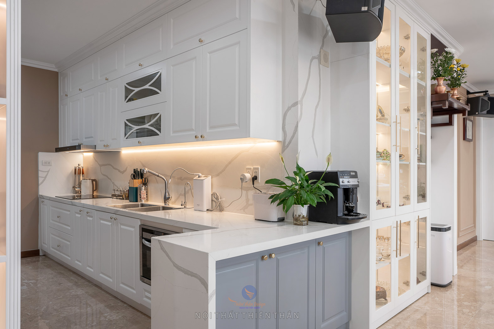 Căn hộ có diện tích 128m2 chia làm 3 phòng ngủ được KTS của Nội Thất Thiên Thần sửa đổi cải tạo làm mới từ đầu từ phần thô đến hoàn thiện nội thất. Phong cách được lụa trọn là bán cổ điển là sự kết hợp giữa nét hiện đại và sự tinh tế của những chi tiết cổ điển đã tạo nên không gian đẹp và đẳng cấp.